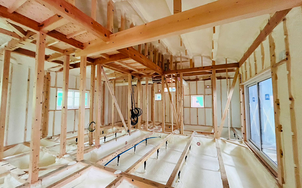 家全体に断熱材を吹き付け魔法瓶のようにすることで、エアコン一台で常に家中を涼しく、または暖かくして過ごすことが可能です。