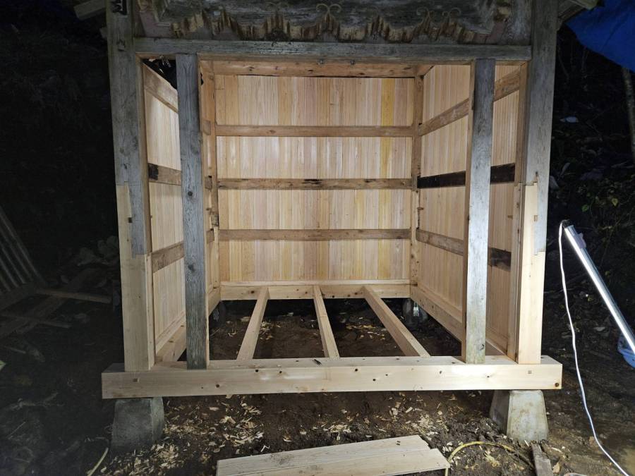 腐食していた土台、床、壁を取り除き、礼拝堂本体をジャッキアップ。
